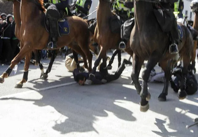 On Saturday August 23, 2014, a group of Swedish antifascists tried to block a meeting of Swedish neo-nazi party Svenskarnas Parti in Malmö. Ten antifascists were injured - at least three of them seriously, after a whole unit of policemen on horses literally rode over their backs. They remained face down, motionless in their own blood. Now their state is critical. We call for solidarity with all the injured activists and their loved ones.