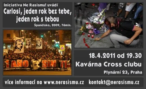 18.4.2011 Promítání: Carlosi, jeden rok bez tebe, jeden rok s tebou Kavárna klubu Cross Praha