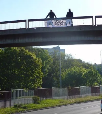 8. máj a ukončenie II. svetovej vojny si pripomenuli aj antifašistické skupiny z Bratislavy. V tento deň na viacerých symbolických miestach hlavného mesta Slovenska rozvešali transparenty, upozorňujúce okoloidúcu verejnosť na fakt, že aj 63 rokov po porážke nacizmu v 2. Sv. vojne sa ešte stále nájdu (s)túpenci tejto zvrátenej ideológie. Ciele neonacistov sú rovnako zhubné a nebezpečné tak ako ich predchodcov, preto sa im treba postaviť. Jedným z miest, ktorým sme si uctili pamiatku bol aj protilietadlový kanón - symbol historického víťazstva nad fašizmom na Partizánskej lúke v oddychovej časti bratislavského lesoparku. Ďalším miestom bol Nový most, zvaný aj Most SNP. Pomenovaný je podľa Slovenského národného povstania, ktoré začalo roku 1944 ako reakcia proti vstupu nemeckého Wermachtu na Slovenské územie a tak bolo odbojom proti nastávajúcej fašistickej vláde na čele s Jozefom Tisom. Napriek tomu, že nemecké jednotky povstaleckú armádu porazili, časť z nej prešla na partizánsky spôsob boja, ktorí Partizáni viedli proti nacistom až do oslobodenia krajiny. Aj ďalšie transparenty niesli viac než jasný odkaz. Nestačí si pripomenúť porážku nacistov len raz do roka- každý z nás by mal byť antifašistom 365 dní v roku! Inde, v hlbšom centre Bratislavy, sme si smútočným vencom uctili pamiatku odvážnej mladej partizánky Violy Valachovej, ktorá sa nebála vo svojich pätnástich rokoch vyrábať protifašisticky orientované letáky a po večeroch ich rozlepovať po uliciach Bratislavy. Pri odvážnom útoku na nemecké obrnené vozidlo bola Viola ako šestnásťročná zastrelená. Nezabúdame i na ďalších, ktorí obetovali svoje životy v boji proti fašizmu a týmto im ďakujeme za ich odvahu a odhodlanie. Bez nich by sme tu dnes nemuseli byť. Boj neskončil pokiaľ nevyhráme!