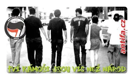 Mám spoustu přátel, kteří pro mě hodně znamenaj. Převážně jsou ze stejnýho města jako já. Někteří tu bydlí dlouho, jiní se přistěhovali nedávno. Další jsem poznal na cestách nebo přes net, píši si s nimi a občas se i setkáme. Nikdy mě nějak extra nezajímala jejich národnost. Důležitý pro mě bylo, že nás něco spojuje a že se na sebe můžeme kdykoliv obrátit. To pojítko mezi náma nikdy netvořila příslušnost k nějakému národu, ale společné zájmy a důvěra. I ti geograficky nejvzdálenější kámoši a kámošky jsou mi bližší než některý lidi, s kterýma bydlim v jednom paneláku a měl bych s nima údajně sdílet nějakou „národní jednotu“. Nevím proč bych se měl kvůli tomu cítit šťastnější vedle našeho souseda, který utápí svoje problémy v chlastu, či naší sousedky, která tráví víkendy nakupováním v hypermarketu. Neberu jim to, ale ať po mě nikdo nechce, abych se s nima ztotožňoval na základě jakéhosi národa.