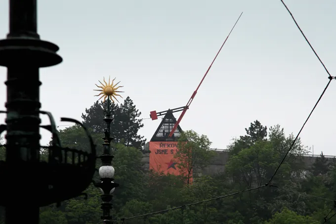 To express our support we hung a large size banner on the base of the former grand monument of Stalin which stands high above the Prague city centre.
