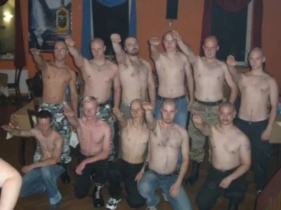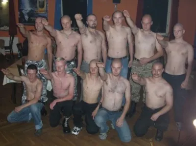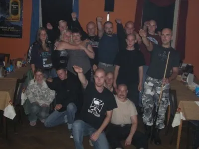 Protagonisty příběhu byli neonacisté ze Sokolovska, okresu v Karlovarském kraji. Podobné obsazení měla i narozeninová párty z léta 2008, z jejíhož průběhu vám přinášíme několik fotografií. Nic nechybí - alkoholické nápoje, pravice nahoře (až člověk přemýšlí, zda náckům nekomplikují provádění všedních úkonů), trocha nezbytného fetišismu v podobě pásky s hákovým křížem a polonahá mužská těla. Nutno chlapcům přičíst k dobru, že na první hromadné fotografie přizvali i děvčata. Svlékání však už byla zábava jen pro chlapy.